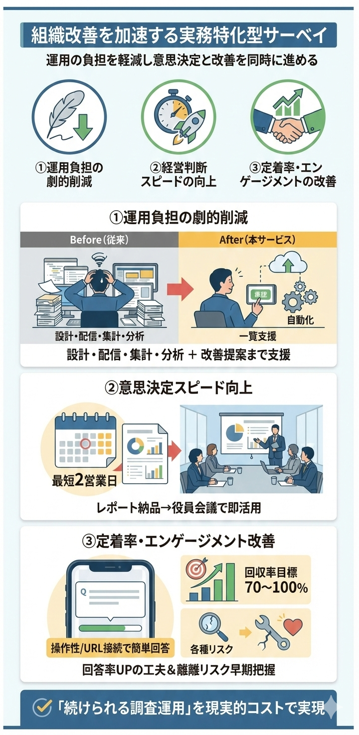 組織改善を加速する実務特化サーベイ