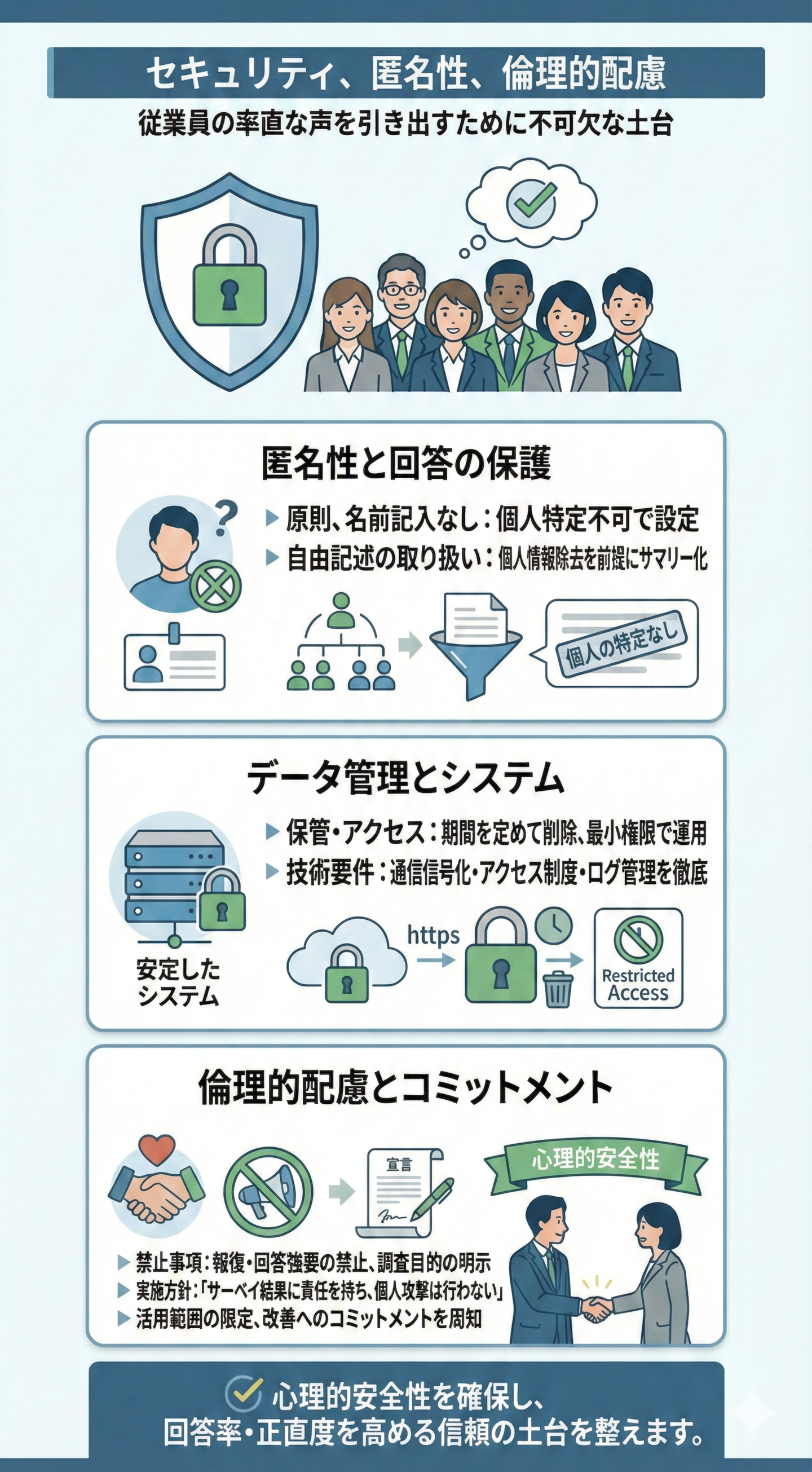従業員の率直な声を引き出すために匿名性の担保と倫理的配慮が不可欠