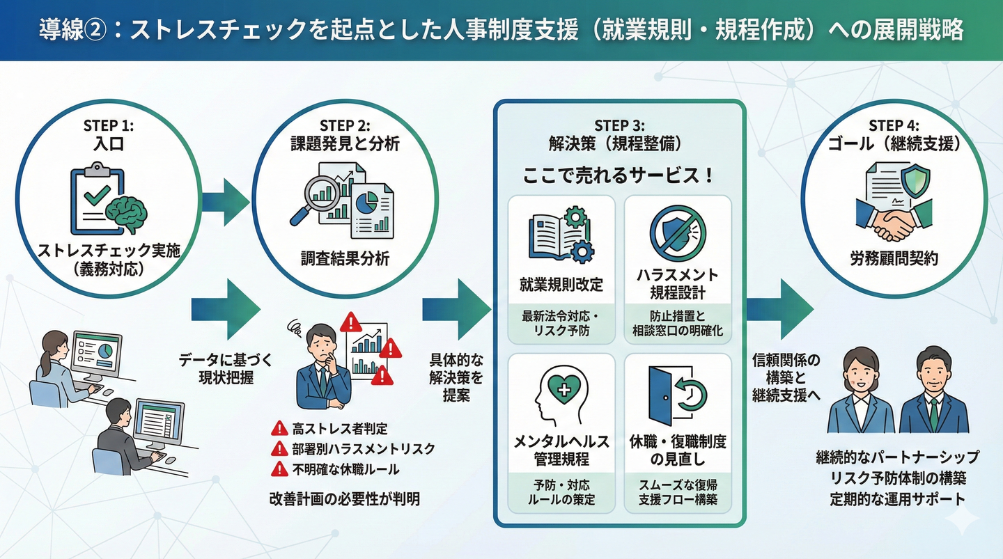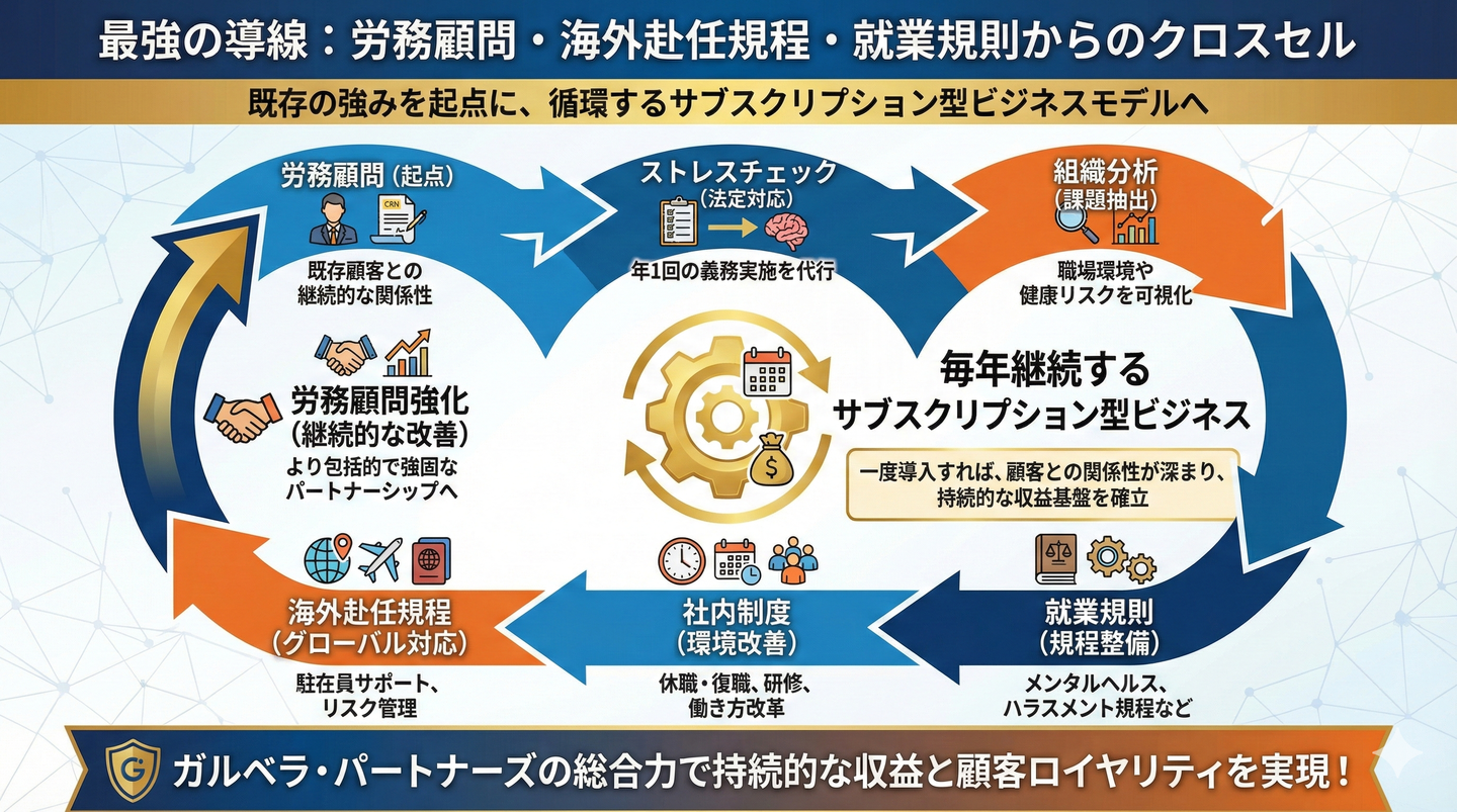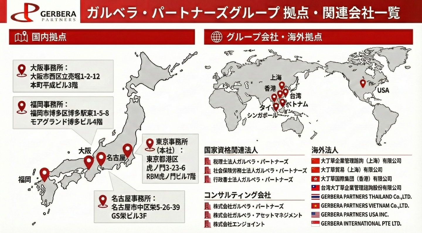 税務・労務・法務・海外人事・経営コンサルがワンストップで提供できる点である。