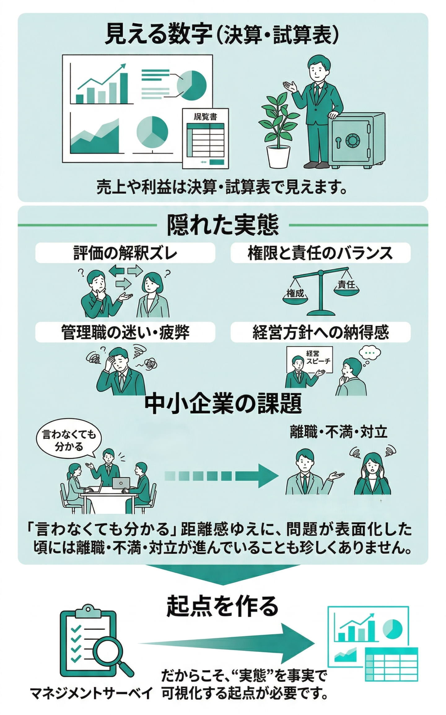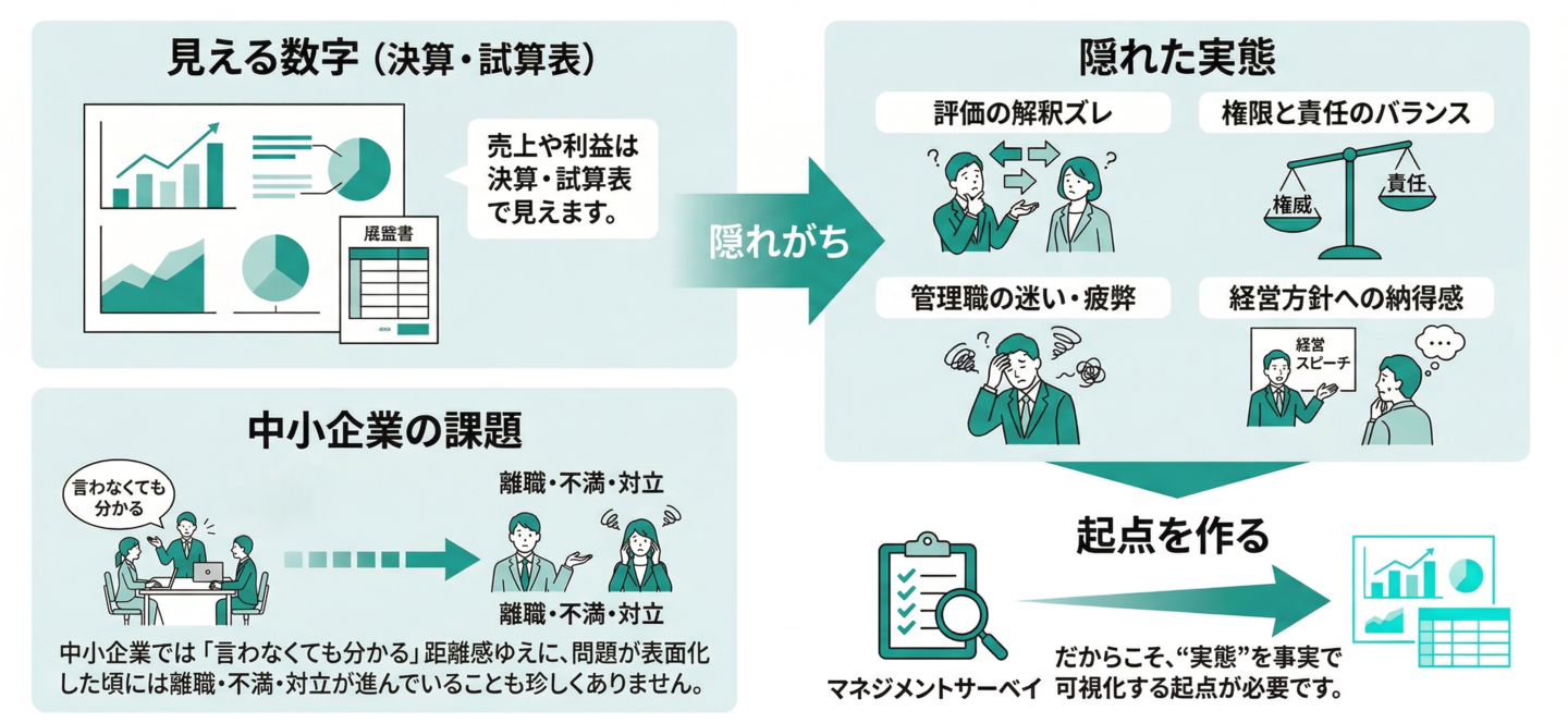 決算では見えない評価のズレや管理職の迷いは、気づいた時には離職や対立に発展しがち。