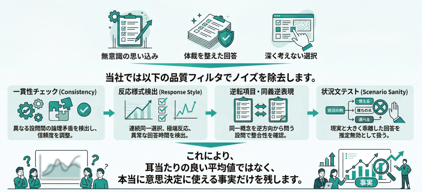 虚偽・誤回答を見抜く“回答品質フィルタ”