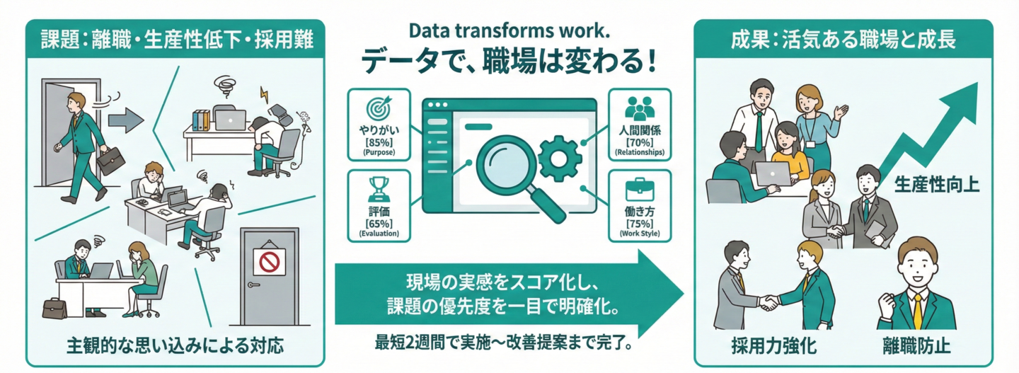 離職防止・生産性向上・採用力強化を“使えるES調査”で実現します。